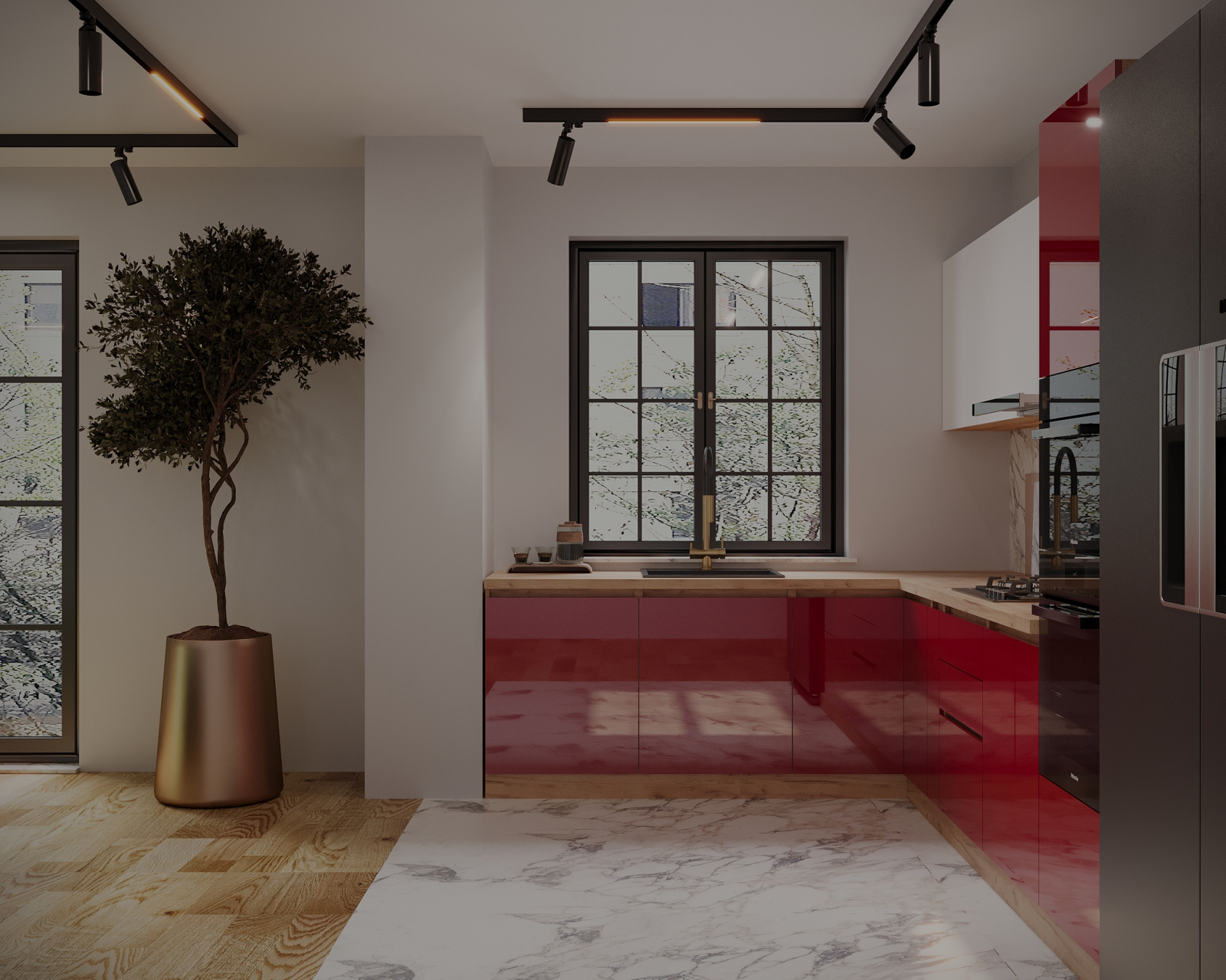 - Front: MDF Alb Lucios + Rosu