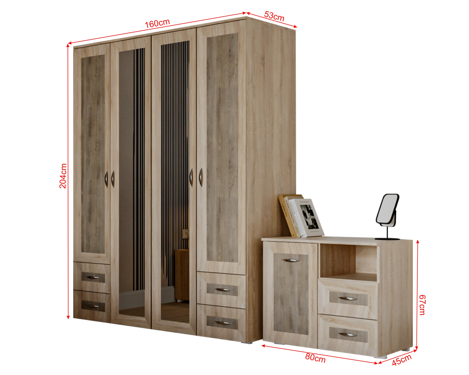 - Dulap 4 Usi cu rafturi si bara haine ( x 1 buc ): Lungime 160 x Adancime 53 x Inaltime 204cm;