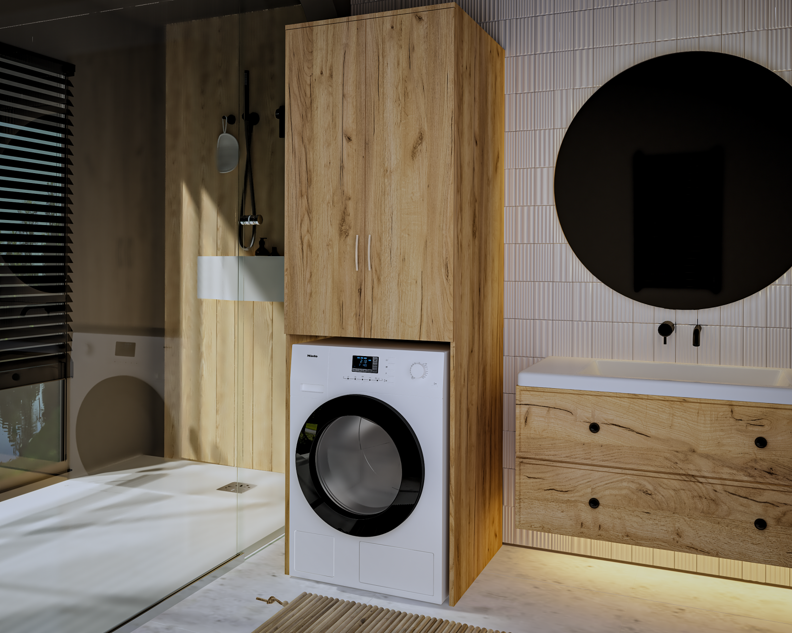 Dulap mașină de spălat rufe stejar MS 2U, 65x60x199 cm