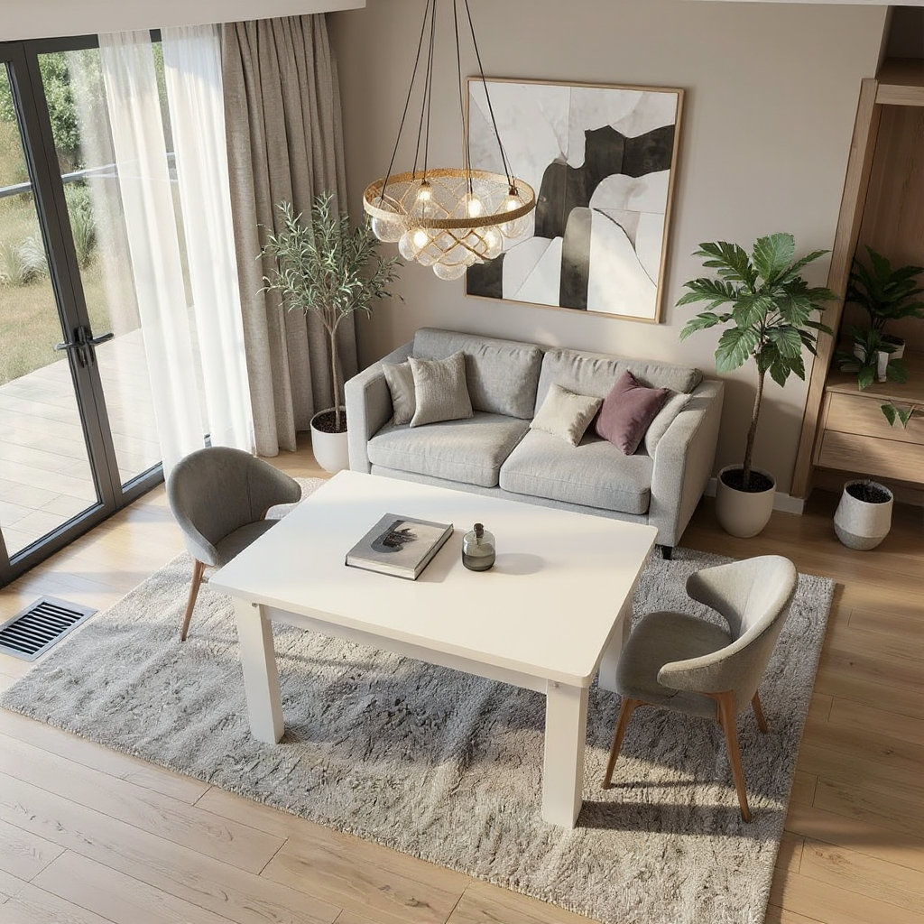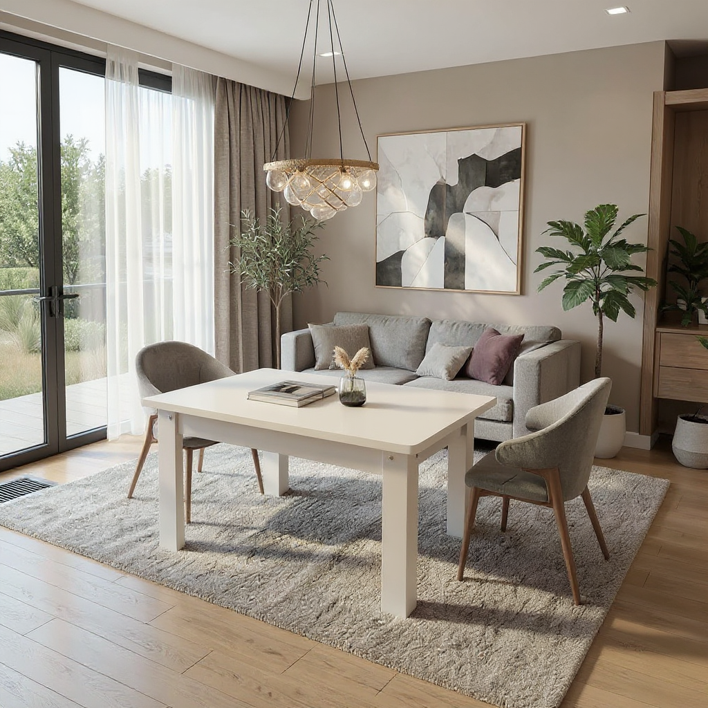 Masa este fixa, din PAL melaminat de nuanta ALB, are blatul dublat si colturile rotunjite.