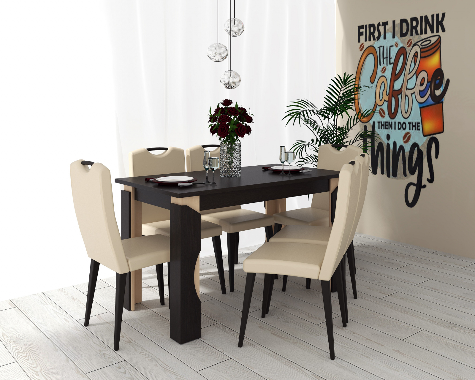 Set Masa Mario Cu 6 Scaune Tapitate RH6002C Crem