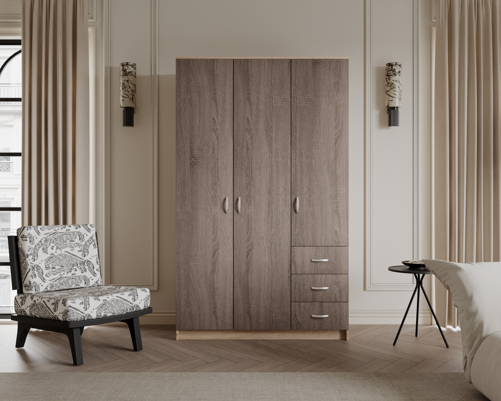 Dulapul dormitor 120 cm Ionuț este alegerea potrivită pentru cei care caută o soluție practică și estetică pentru organizarea hainelor. Realizat din PAL melaminat de 16 mm, acest dulap haine combină nuanțele naturale Sonoma și Trufe, aducând un plus de lumină și căldură în orice tip de mobilă dormitor. Compartimentarea interioară este gândită pentru eficiență: ai la dispoziție rafturi pentru depozitare, o bară pentru umerașe și 3 sertare încăpătoare, astfel încât fiecare categorie de obiecte să aibă locul ei.