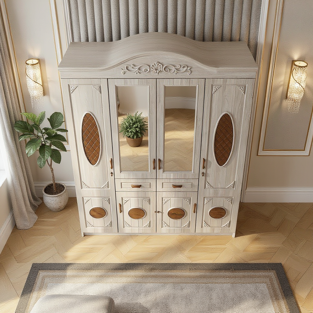 Dulapul haine ZQE-017 este alegerea perfectă pentru cei care au nevoie de spațiu generos și organizare eficientă în dormitor sau hol. Cu dimensiuni de 200x215x52 cm, acest dulap impresionează prin capacitatea mare de depozitare, fiind prevăzut cu 6 uși cu balamale, două sertare cu sistem de glisare metalic, bară pentru umerașe și multiple rafturi pentru haine, lenjerii sau accesorii. Corpul este realizat din PAL melaminat alb, iar fronturile din MDF, ceea ce îi conferă rezistență și un aspect modern, ușor de integrat în orice decor.
