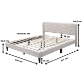 Fabricat cu precizie si conceput pentru a va imbunatati experienta de somn, acest pat este amestecul perfect de stil si functionalitate. Caracteristici cheie: Design elegant: Patul are un design elegant si modern care completeaza fara efort orice decor de dormitor. Calitate: Fabricat meticulos cu materiale de inalta calitate, patul nostru este construit pentru a rezista. Cadrul robust din lemn asigura durabilitate, in timp ce tapiteria premium adauga sau nota de opulenta.