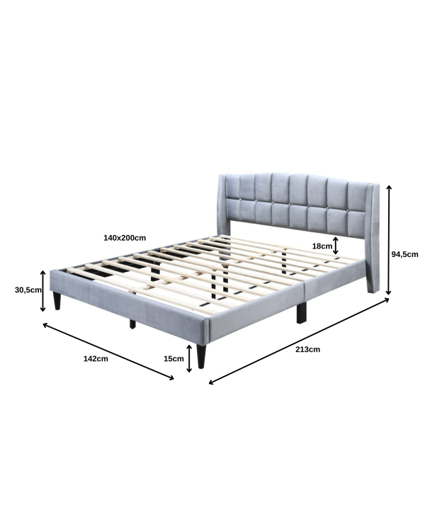 Fabricat cu precizie si conceput pentru a va imbunatati experienta de somn, acest pat este amestecul perfect de stil si functionalitate. Caracteristici cheie: Design elegant: Patul are un design elegant si modern care completeaza fara efort orice decor de dormitor. Calitate: Fabricat meticulos cu materiale de inalta calitate, patul nostru este construit pentru a rezista. Cadrul robust din lemn asigura durabilitate, in timp ce tapiteria premium adauga sau nota de opulenta.
