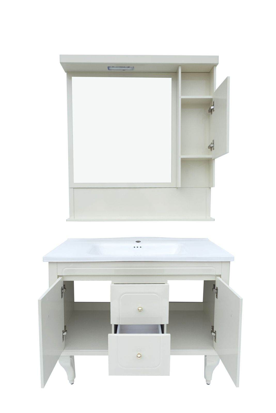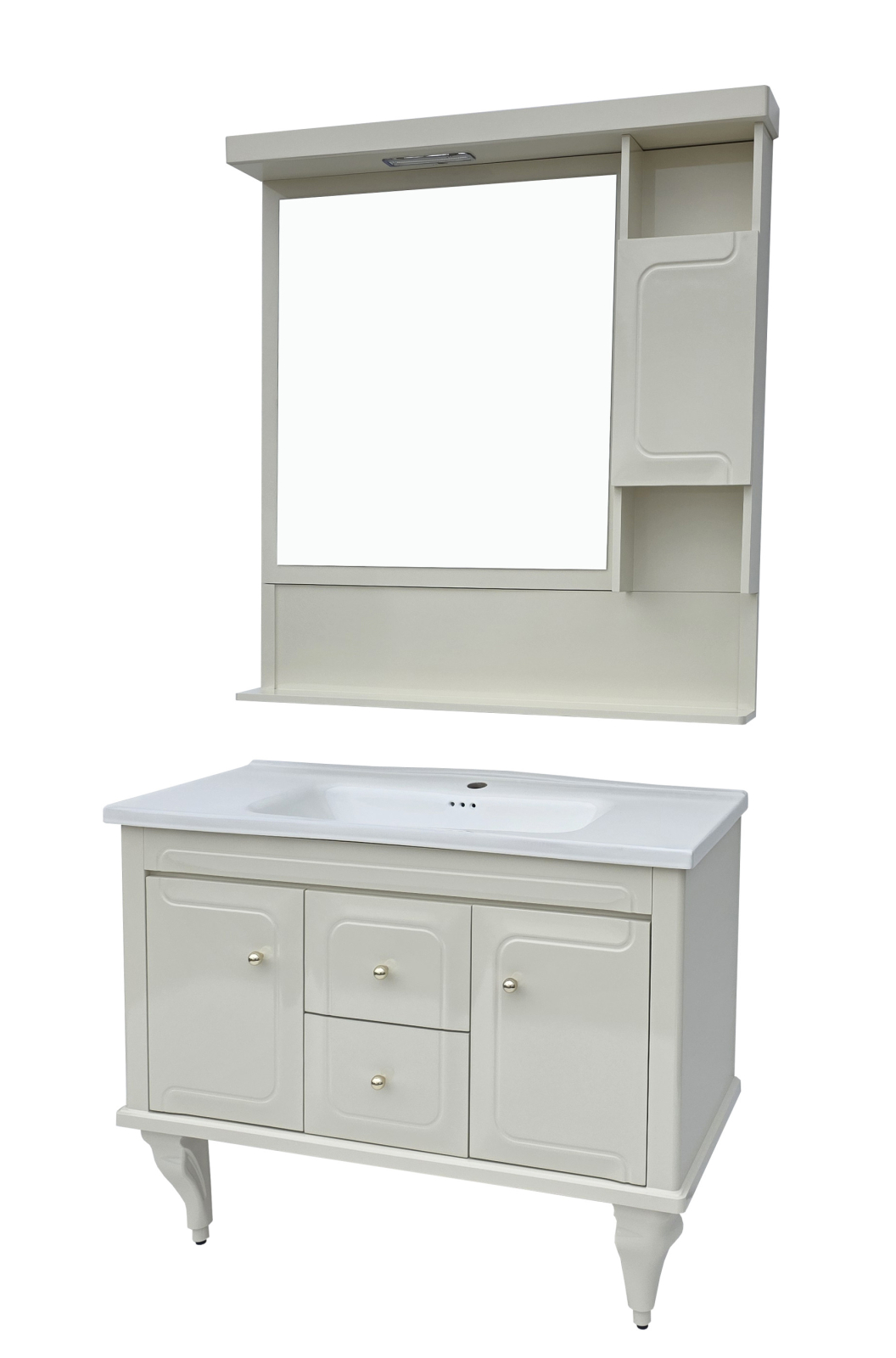 Set mobilier baie realizat din PVC Alb/Aur, cu design elegant si compartimentare completa.